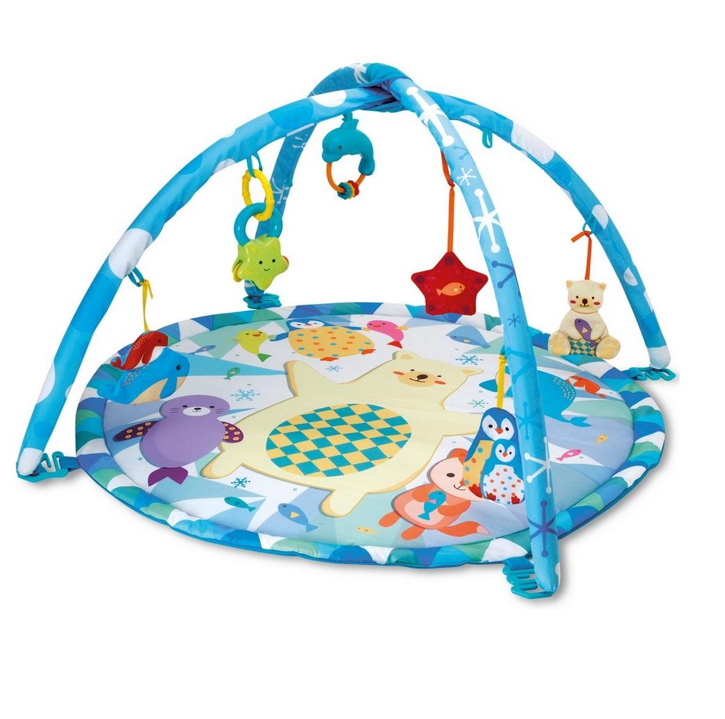 Mata sprawdza się przez cały pierwszy rok, a nawet dłużej. Niemowlę bacznie obserwuje kolorowe kształty zabawek podwieszonych na pałąkach. Stopniowo zaczyna wyciągać do nich rączki, próbując je złapać. Dostosowana do 3 najważniejszych etapów rozwoju malucha: leżenie na plecach, leżenie na brzuszku, siadanie i raczkowania. Mata wykonana jest z najlepszych materiałów. Jest mięciutkim i bezpiecznym miejscem do zabawy dla każdego malucha. Rozwija sprawność ruchową, zachęca do podnoszenia głowy, przekręcania się na brzuszek. Rozwija umiejętności poznawcze. Zabawki można zawiesić na różnych wysokościach, a także odczepiać je, żeby zabrać ze sobą na spacer lub w podróż autem. Ma odczepiane pałączki, jest łatwa do złożenia i zapakowania. Można prać w pralce. Wymiar maty: 80 x 80 cm.