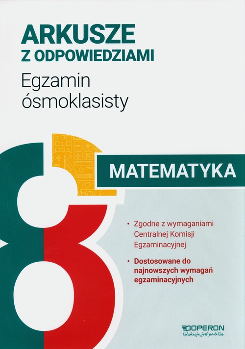 Arkusze ósmoklasisty z odpowiedziami z matematyki Wydawnictwa Operon to kompleksowy zbiór arkuszy z Ogólnopolskiego Próbnego Egzaminu z Operonem z lat 2018–2020 wraz z odpowiedziami. Rozwiązując je, można w praktyce sprawdzić i utrwalić wiedzę przed egzaminem. Zbiór zawiera arkusze prezentowane na egzaminie ogólnopolskim, a także materiały wcześniej nieupublicznione.