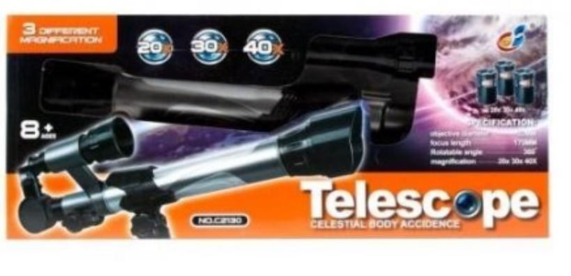 Teleskop to narzędzie, które służy do obserwacji odległych obiektów poprzez zbieranie promieniowania elektromagnetycznego (np. światła widzialnego). Może dzięki MEGA CREATIVE uda Ci się dojrzeć z bliska planety i gwiazdy! Teleskop wykonany z plastiku. Produkt przeznaczony dla dzieci w wieku: 8+. Nie wymaga zasilania bateriami. Wymiary opakowania (dł. x wys. x gł.) [cm]: 46x19x8.