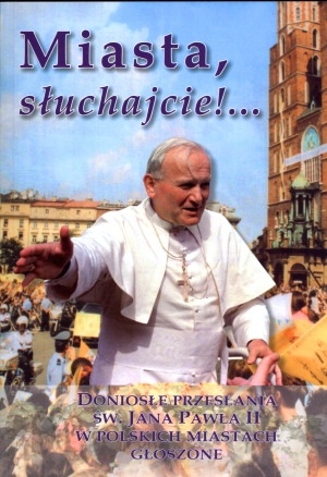 Taki Świadek do nas mówił. I wszystkie jego słowa – przede wszystkim te, wypowiadane od ołtarzy pielgrzymkowych – powinniśmy sobie przypominać, nimi się sycić i umacniać w prawdzie wobec współczesnego zakłamania i ogłupiania. Pomoże nam w tym swoiste vademecum – wyciąg najważniejszych wypowiedzi Jana Pawła II, kierowanych do nas od 86 ołtarzy pielgrzymkowych z ponad 60 miast. Ich zbiór poprzedza o wyjątkowej poetyce Zamiast wstęp, czyli wprowadzenie Ks. Bp. Józefa Zawitkowskiego. Całość jak najbardziej odpowiada maksymie prof. A. Mencwela, historyka kultury, wkładającego w usta Jana Pawła II słowa: 'Przestańcie mnie czcić, zacznijcie rozumieć'. Miasta, słuchajcie!... – to 'wysłuchanie' jego słów właśnie po to, by je 'zrozumieć' i przyswoić dla własnego i innych dobra.