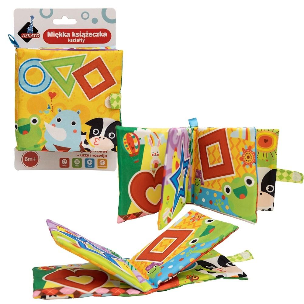 Wykonana z miękkiego, przyjemnego w dotyku materiału, w żywych kolorach, szeleszcząca z wszytym piszczkiem. Na każdej z 8 stron znajdują się kolorowe obrazki, zamykana na rzep.