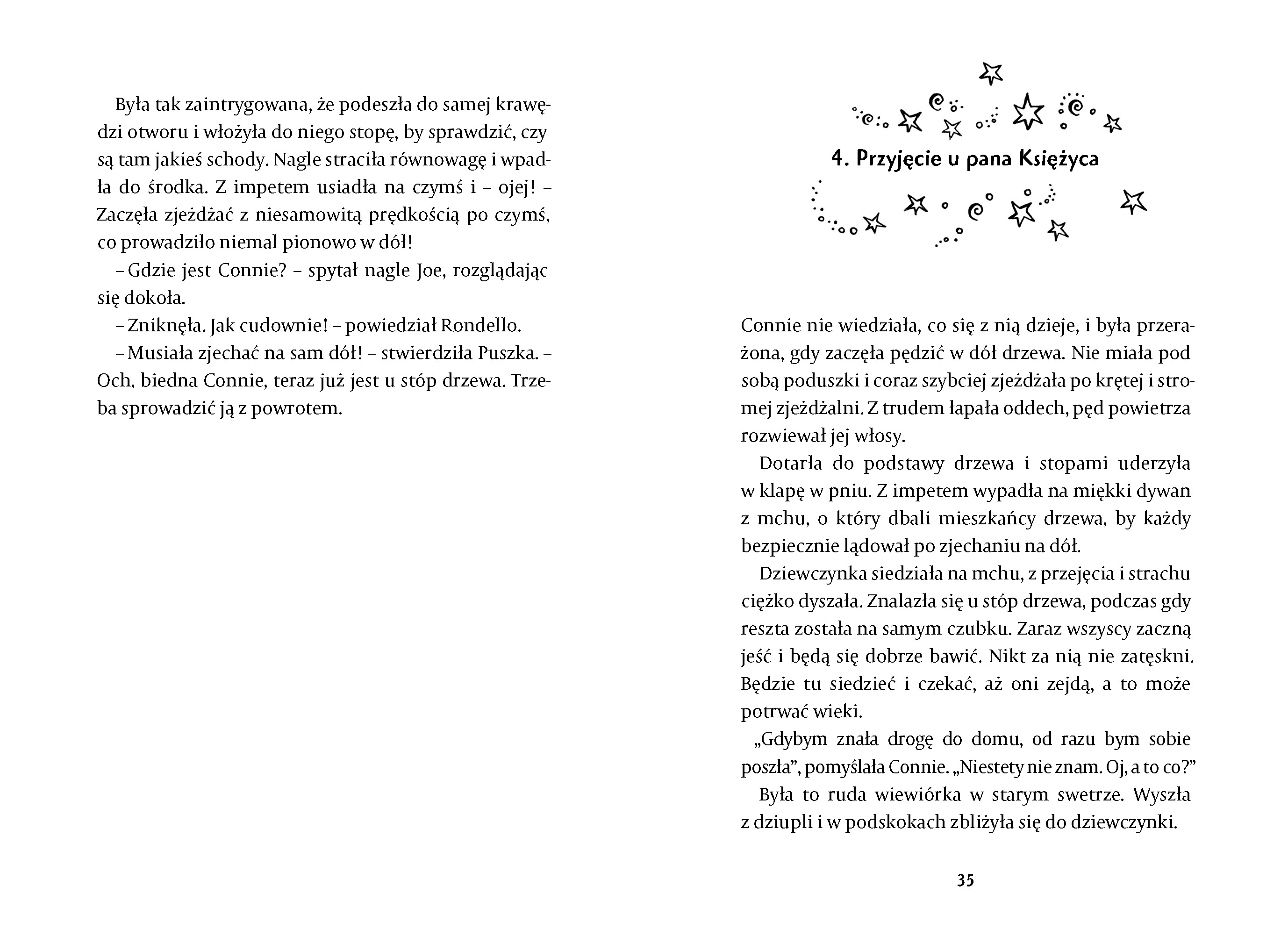 Ciekawska Connie znika w Krainie Cudów Niewidów, a ta odjeżdża znad Niebosiężnego Drzewa. Żadna kraina, która odjechała, szybko jednak nie wraca… Przyjaciele dziewczynki, Frannie, Beth i Joe, są zdruzgotani. Tylko Rondello, osobliwy jegomość obwieszony garnkami, wie, jak pomóc Connie. Ale to oznacza wyprawę do Krainy Olbrzymów.