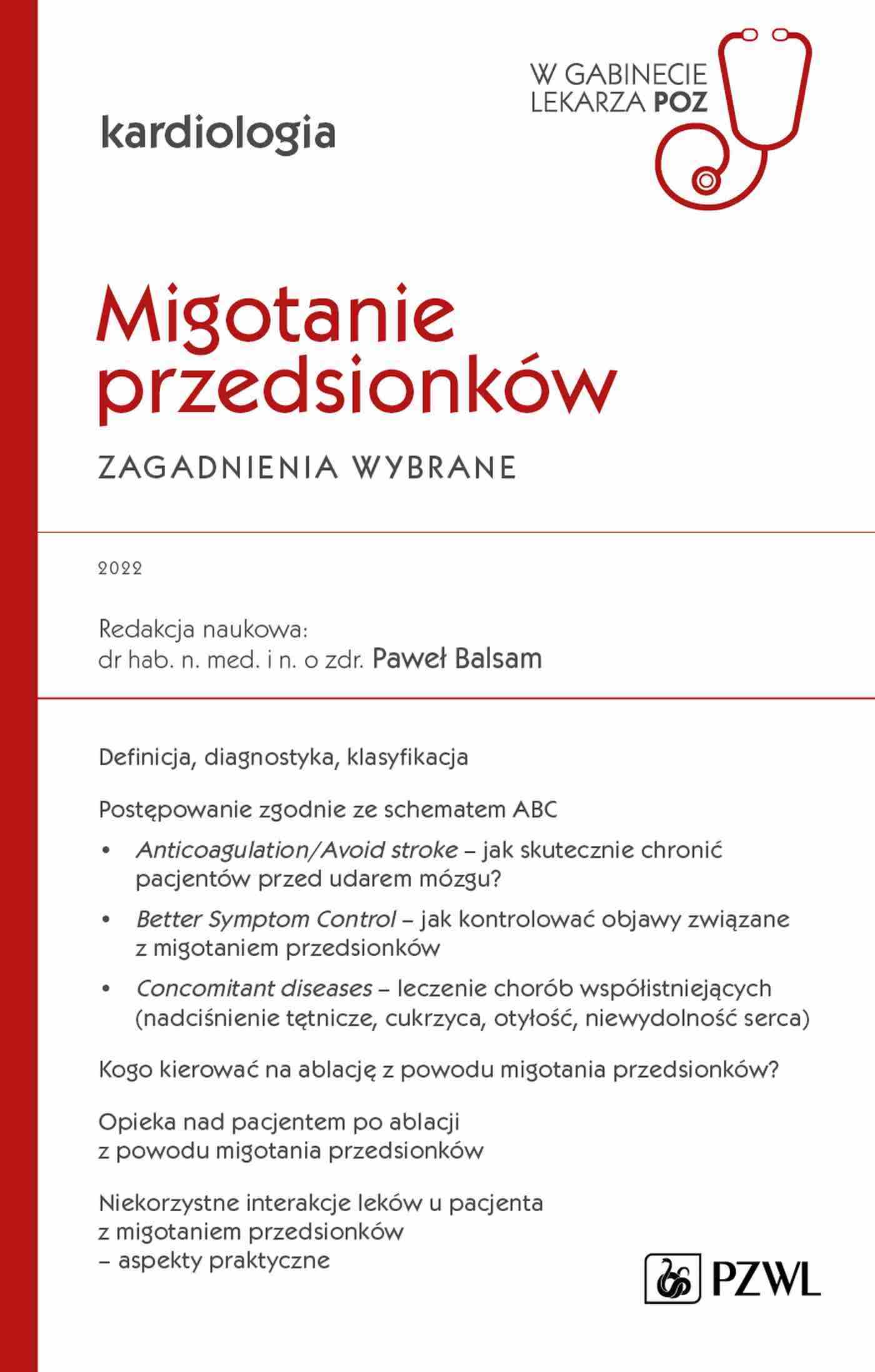 Opis produktuZasady bezpieczeństwaPublikacja pod redakcją naukową dr. hab. Pawła Balsama obejmuje szerokie spektrum tematów omawiających najistotniejsze, zdaniem autorów zagadnienia dotyczące migotania przedsionków. Liczymy, iż przedstawione tematy zainteresują nie tylko kardiologów, ale także lekarzy innych specjalności, którzy w swojej codziennej praktyce klinicznej mają kontakt z pacjentkami kardiologicznymi. Gorąco polecamy tę monografię także wszystkim osobom przygotowującym się do egzaminów specjalizacyjnych oraz każdemu, kto realizuje zasadę konieczności stałego doszkalania się. x