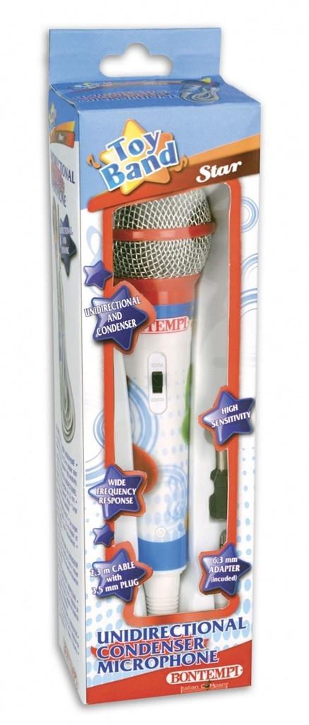 Mikrofon Dynamiczny Karaoke włoskiej firmy Bontempi to idealny instrument dla młodych miłośników śpiewania. Urządzenie posiada przewód o długości 2,3m zakończony złączem audio 3,5 i adapterem w zestawie do złącza 6,3mm. Wymiary produktu 22 x 5,5 x 5,5cm. x
