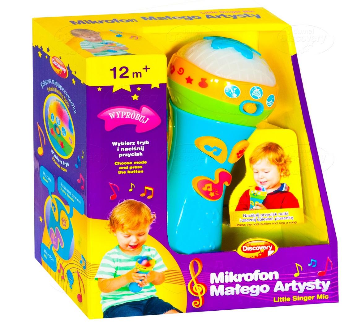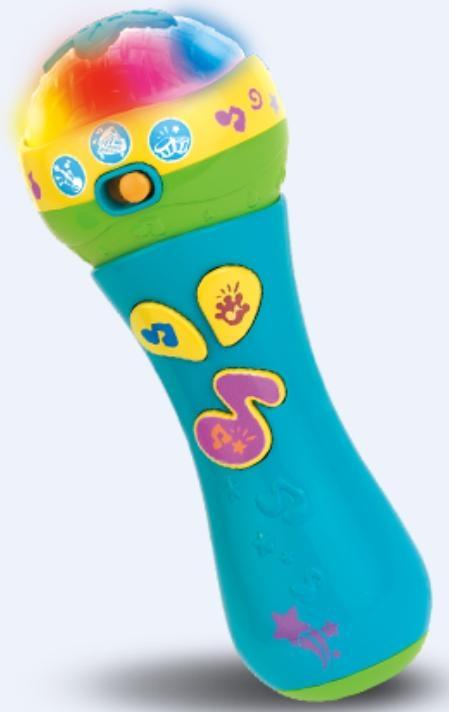 Poczuj się jak mały artysta i śpiewaj w akompaniamencie kolorowego mikrofonu, który wygrywa wesołe melodie, wydaje zabawne dźwięki oraz miga kolorowymi światełkami. Naciskając małą nutkę uruchamiamy wesołe melodie oraz migające światełka. Po naciśnięciu przycisku z łapkąusłyszymy zabawne dźwięki. Kiedy Maluszek naciśnie dużą nutkę i zacznie śpiewać usłyszy lekki pogłos.