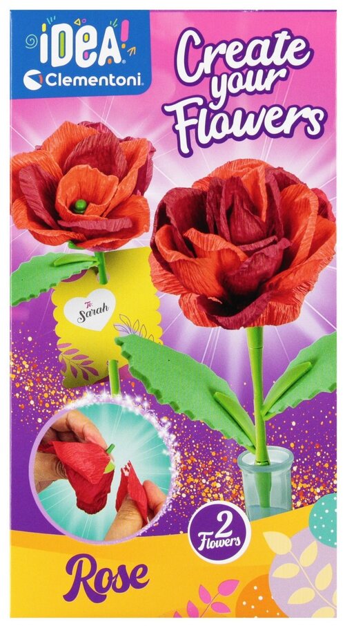 Zestaw „Mini Fabryka Kwiatów: Róża” to wyjątkowa propozycja dla dzieci, które kochają tworzyć, dekorować i wręczać własnoręcznie wykonane prezenty. Z jego pomocą można stworzyć dwie zachwycające róże z papieru, które umieszcza się w ozdobnym, personalizowanym stojaku z kartonu. Gotowa kompozycja świetnie sprawdzi się jako prezent – wystarczy dodać imię obdarowanej osoby lub krótką dedykację. Zestaw umożliwia dowolne łączenie elementów – płatków, łodyg, liści i dekoracji – co pobudza wyobraźnię i rozwija zdolności manualne. To doskonała zabawa zarówno dla dziewczynek, jak i chłopców, którzy chcą spróbować swoich sił w tworzeniu ozdób florystycznych. Całość została wyprodukowana we Włoszech i wchodzi w skład serii Clementoni IDEA – linii kreatywnych zestawów, które rozwijają talenty artystyczne i motoryczne dzieci.