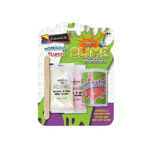 Zestaw zawiera plastikowy pojemnik z przykrywką, dwie saszetki sproszkowanej masy Slime i drewniany patyczek do mieszania.