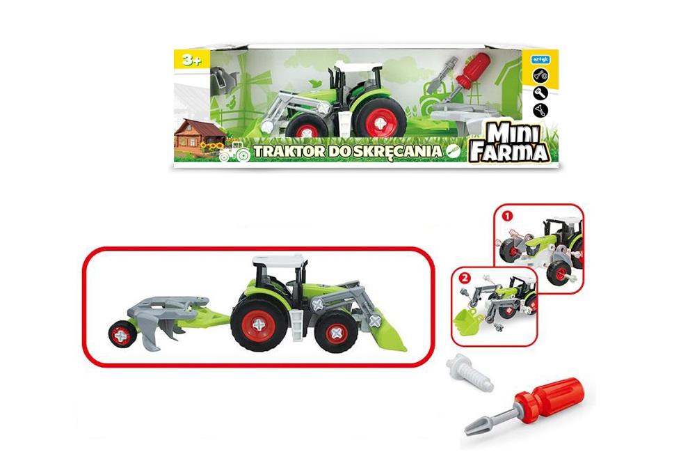 W zestawie: traktor, przyczepa, narzędzia.