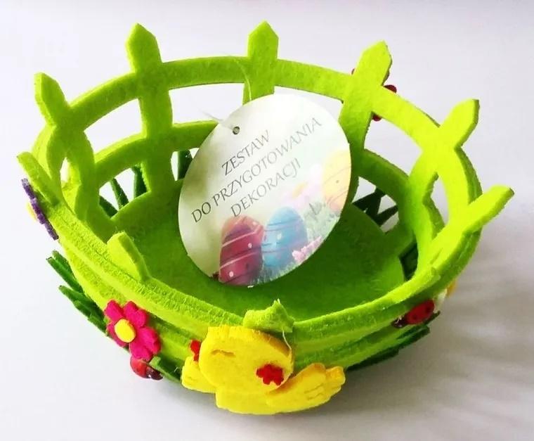 Koszyczek wielkanocny wykonany z filcu, który idealnie nada się do przygotowania wielkanocnej dekoracji na stół.