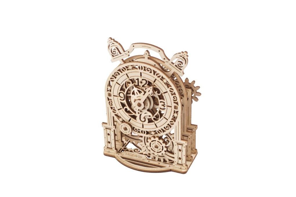Zegar Vintage Alarm Clock jest uzupełnieniem i towarzyszem Steampunk Clock w katalogu Ugears. Oba posiadaja? azurowy styl dekoracyjnego rzezbienia i przekładni, ła?cza?c styl steampunkowy z lekkim odcieniem weneckiego uroku. Jeden i drugi model jest oceniany jako łatwy dla pocza?tkuja?cych lub młodszych konstruktorow. Oba zapewniaja? udekorują Twoją połkę lub stolik. Żadnego kleju. Po prostu wyciśnij elementy ze sklejki, połącz ze sobą. Potem wystarczy, że nasmarujesz zębatki woskiem i do przodu! Dzwoń dzwoneczku. Nie tylko eksponat.