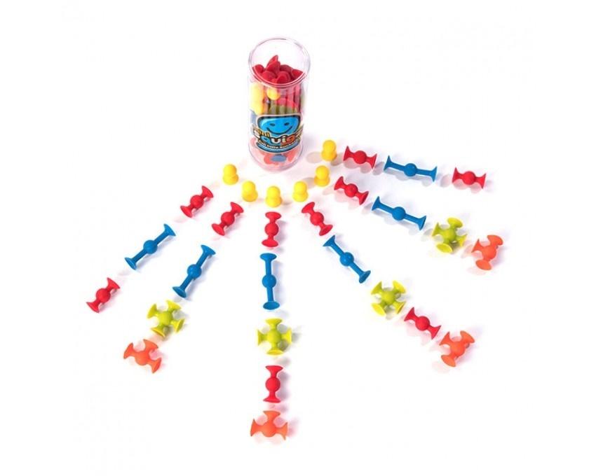 Mini Przyssawki przyklejają się do siebie i do każdej gładkiej powierzchni. To nowy gatunek klocków. Wyginają się, przyklejają się, dyndają, wsysają w inny wymiar kreatywności. To elastyczni pracownicy zawsze gotowi do zabawy i eksperymentowania, przyklejania do wanny, okna a może ściany, komputera, a może.. telefonu... i jak grzeczni goście nie pozostawiają śladów swojej obecności.