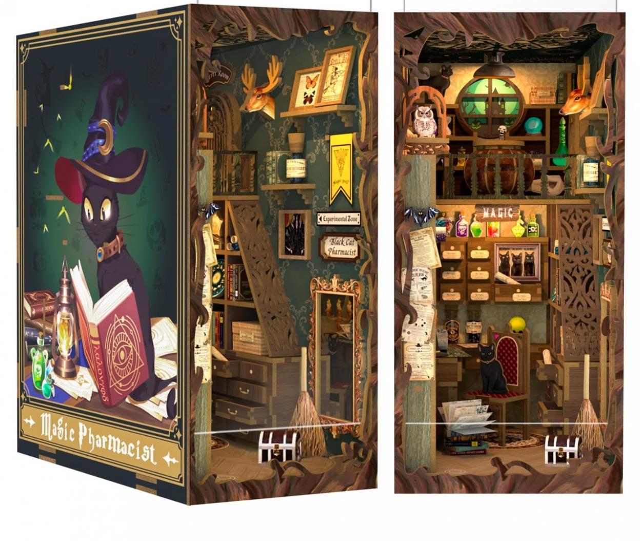 Opis produktuZasady bezpieczeństwaMiniaturowy domek DIY do samodzielnego montażu typu Book Nook - typ książkowy Dołącz do magicznego aptekarza i przygotuj czarodziejskie mikstury, aby odkryć świat magii! Specyfikacja: Zawartość opakowania: Przeznaczenie: Wszystkie elementy są wycinane laserowo, mają gładkie powierzchnie, pokryte są kolorem. Poradnik DIY: x