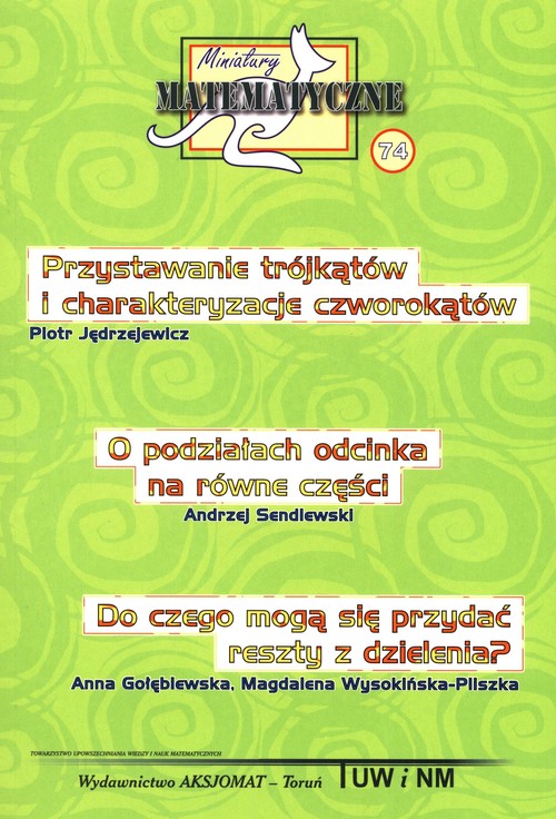 W miniaturze pierwszej autor zgłębia zawiłości tak zdawałoby się prostego pojęcia jak przystawanie trójkątów. Przedstawia w niej precyzyjną definicję tytułowego pojęcia, następnie przypomina znane ze szkoły cechy przystawania. W dalszej treści przytacza inne cechy, które niekoniecznie są używane w edukacji szkolnej. Na zakończenie artykułu autor przenosi wyniki i na czworokąty, co jest zapewne dla wielu uczniów nowością. Czytelnik dowie się, jak można wykorzystywać podstawowe, znane ze szkoły cechy przystawania trójkątów do opisu i klasyfikacji niektórych czworokątów — równoległoboku, trapezu równoramiennego, deltoidu. Rozumowania zaprezentowane w tej miniaturce to czysta logika — świetna szkoła ćwiczenia umysłu, kształtowania zdolności i wdrażania dyscypliny intelektualnej.