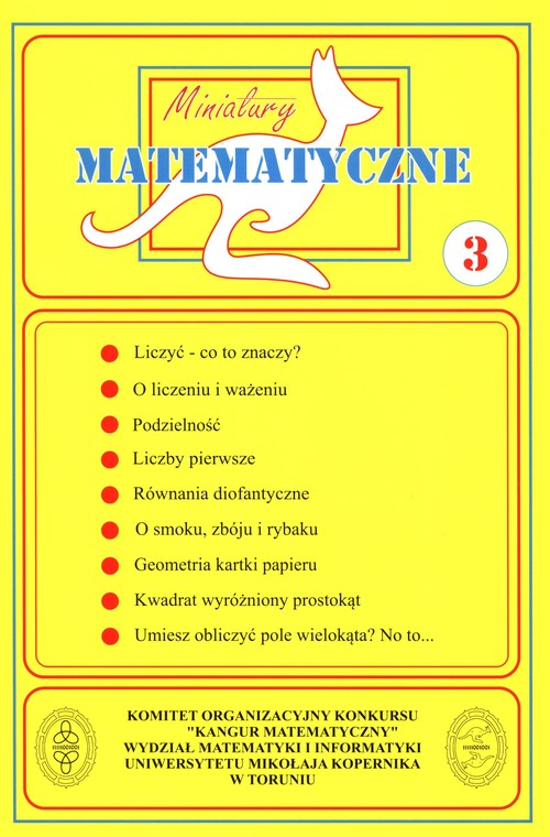 Pragniemy podtrzymać tę dobrą atmosferę, dostarczając młodym uczniom zainteresowanym matematyką dodatkowego bodźca. Mamy nadzieję, że tę rolę spełnia seria książeczek Miniatury Matematyczne, której trzeci tom przekazujemy w wasze ręce. Książeczka adresowana jest przede wszystkim do uczniów szkół podstawowych, interesujących się matematyką oraz pragnących poszerzyć swoją wiedzę i umiejętności w tym zakresie o pozaprogramowe zagadnienia i idee rozwiązań nietypowych problemów matematyki elementarnej. Może też ona być pomocna nauczycielom, rodzicom i opiekunom matematycznych kółek zainteresowań, pracujących z dziećmi na zajęciach pozalekcyjnych. Autorzy Miniatur sądzą, że ci wszyscy, którzy przygotowują się do konkursów matematycznych, w tym do konkursu Kangur, znajdą w niej dobre wsparcie merytoryczne. Mamy nadzieję, że oryginalność treści zadań oraz przedstawiona w sposób przystępny historia rozwoju pewnych pojęć matematycznych zainteresuje matematyką czytelników tej książeczki. Wobec dużej popularności dwóch pierwszych tomów Miniatur Matematycznych zespół redakcyjny postanowił wydać następną książeczkę z tej serii. Tom 3 Miniatur oparty jest w dużej mierze na poprzednich dwóch tomikach. Niektóre rozdziały zostały przeredagowane i wzbogacone o nowe zadania. x