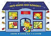 Zabawa w szkołę dla 5-6 latków. Dziecko pomaga misiowi rozwiązywać zadania, a gdy zaistnieje taka potrzeba - poprawia błędne odpowiedzi udzielone przez misia. Zwiększa to poczucie wartości przyszłego ucznia, umacnia wiarę we własne siły. Dzięki udzielaniu pomocy i korygowaniu błędów misia, dziecko przekonuje się o tym, że nikt nie jest nieomylny, każdy może popełnić błąd, a ono ma już tak dużą wiedzę i umiejętności, że może bez żadnych problemów pomagać roztargnionemu misiowi.