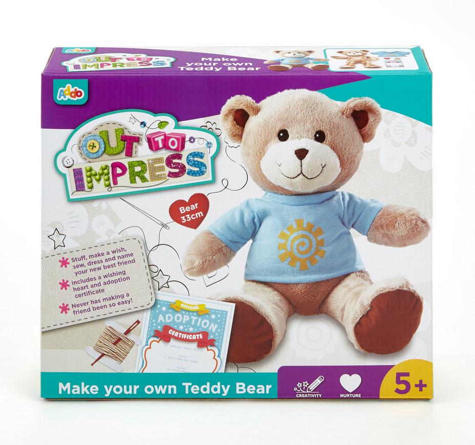 Stwórz swoją własną przytulankę – misia - z tym zestawem. Wypełnij go puchem, ubierz, zszyj i nadaj mu imię! Uzupełnij certyfikat adopcji, żeby nie zapomnieć o jego urodzinach.