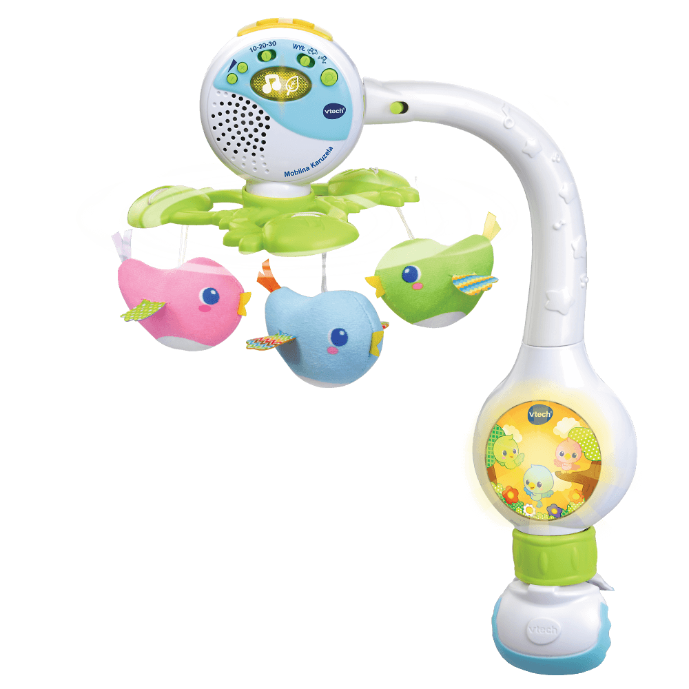idealne rozwiązanie dla rodziców w domu, podróży czy na spacerze dzięki zastosowaniu uniwersalnego uchwytu możliwość montażu w wielu miejscach obrotowy uchwyt z funkcją lampki nocnej podświetlany przycisk ułatwiający jego odszukanie i uruchamianie karuzeli regulacja głośności wyłącznik czasowy z możliwością ustawienia na 10, 20 lub 30 minut reaguje na płacz dziecka, uruchamiając automatycznie melodie oraz dźwięki trzy miękkie i kolorowe ptaszki zamontowane na obrotowym mechanizmie x