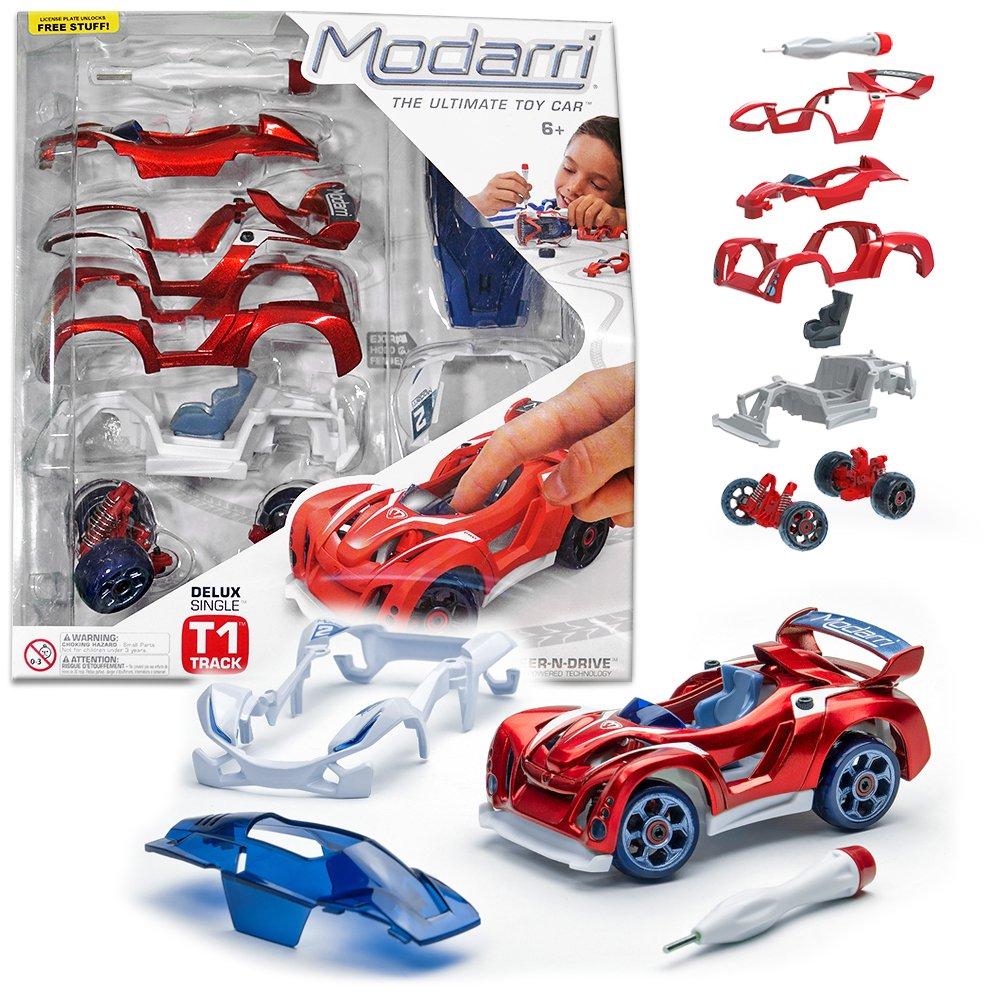 Wersja Modarri Delux, dzięki dodatkowym elementom załączonym do opakowania, daje możliwość dziecku tworzenia swoich niepowtarzalnych samochodów Modarri, od razu po wyjęciu z pudełka. Z tym zestawem, Twoje dziecko będzie się bawić i uczyć godzinami tworząc klasyczną wyścigówkę, drogową wyścigówkę lub kombinację tych dwóch! Modułowy system składania samochodu Modarri wykorzystuje śrubki zabezpieczone w specjalny sposób, uniemożliwiający wypadanie po odkręceniu. Dzięki temu wymiana części jest szybka i łatwa. Aby szybko rozmontować samochodzik i złożyć go ponownie wystarczy poluzować śrubki przy użyciu specjalnie zaprojektowanego dla rąk dziecka śruborkęta (załączonego do opakowania).