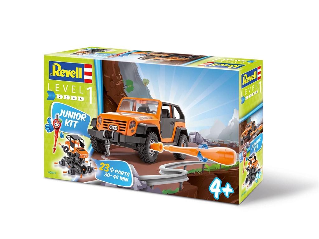 Czas na dziką przygodę! Zbuduj swój pierwszy SUV i wybierz się na ekscytującą wycieczkę. Zdejmowany dach i drzwi (hardtop), wielkie terenowe koła, w tym piąte zapasowe, wyciągarka zapewniają niesamowitą zabawę. Mali fani offroadu, już w wieku 4 lat, mogą zmontować swój pierwszy samochód terenowy. Zabawa jest bardzo prosta. Wystarczy skręcić elementy samochodu przy pomocy specjalnych śrub i śrubokręta. Kolorowa, obrazkowa instrukcja montażu poprowadzi małego konstruktora krok po kroku. Długość modelu około 215 mm. Czas budowy około 30 do 45 minut. Zawiera 23 części + 18 elementów złącznych.