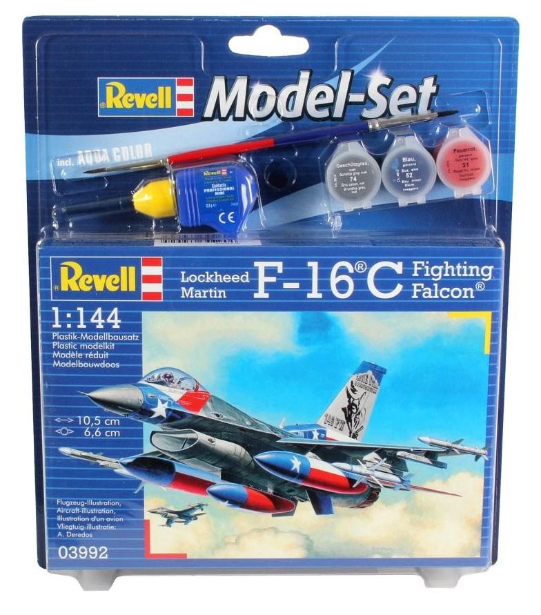 Lockheed Martin F-16 - jest uważany za jeden z najbardziej wszechstronnych samolotów nowoczesnych myśliwców. Plastikowy model do sklejania Revell (REV-63992 ) Długość: 10,5 cm Rozpiętość skrzydeł: 6,6 cm Skala: 1:144 Ilość elementów: 70 x