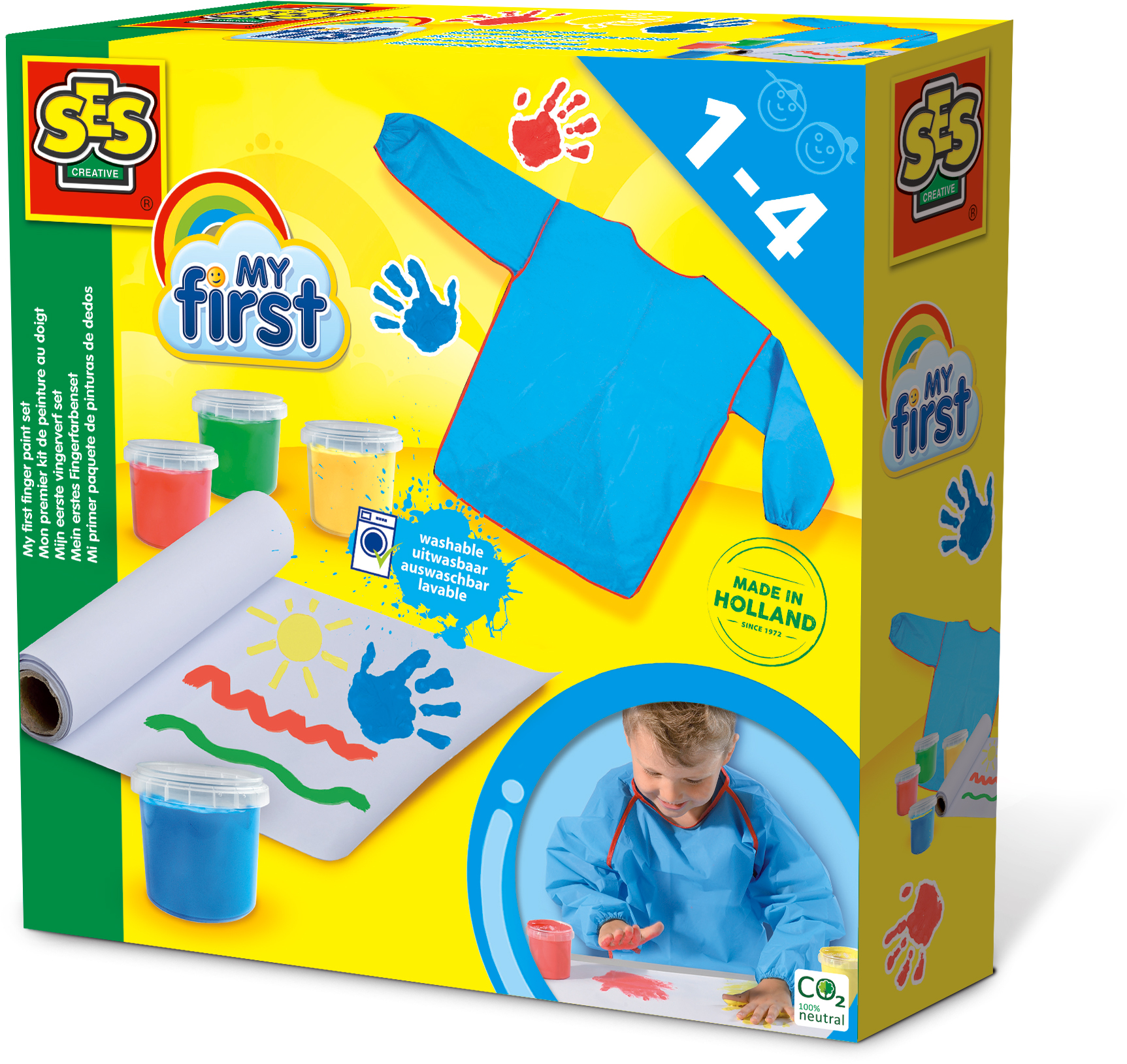 Ten zestaw SES zawiera wszystko, co małe dziecko potrzebuje, by zacząć swoją przygodę z malowaniem palcami. Załóż fartuszek ochronny, weź kilka kartek papieru i wspaniała zabawa nie będzie miała końca!