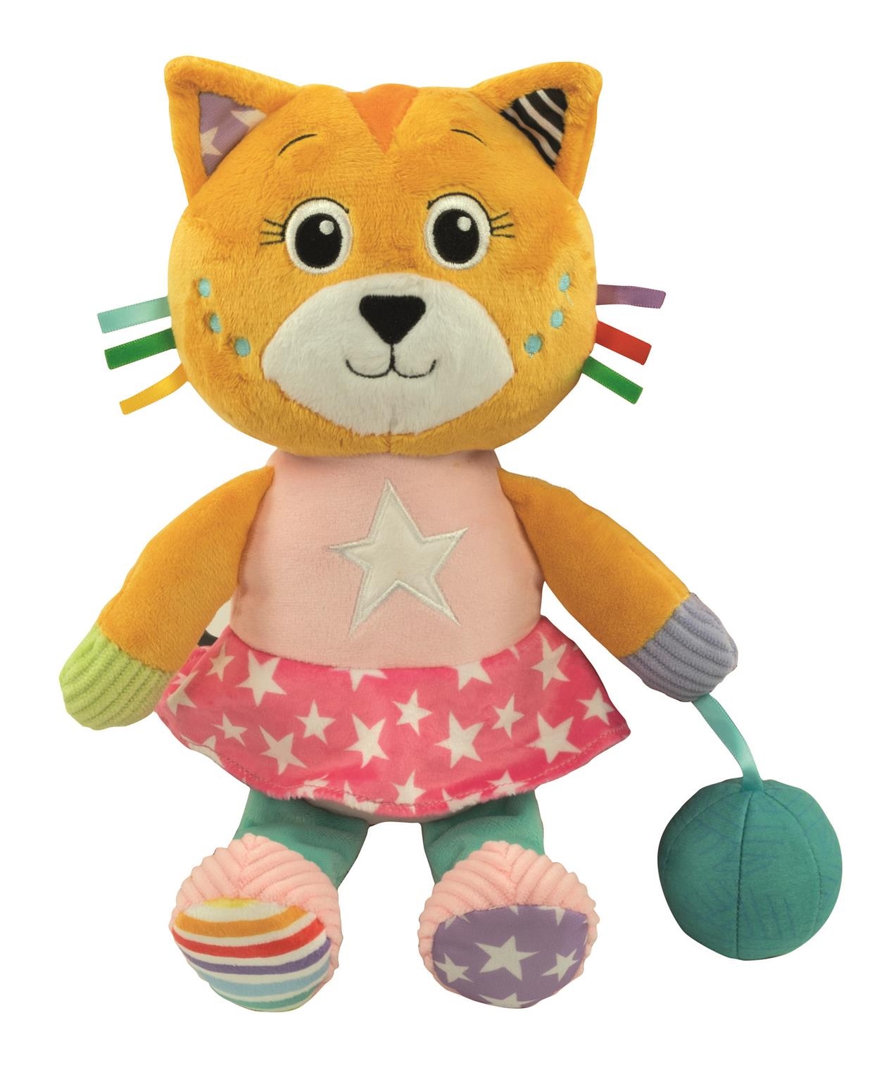Opis produktuZasady bezpieczeństwaSłodki, miękki kociak. Miękki i bezpieczny przyjaciel, idealny do przytulania. Mała zawieszka w kształcie kulki z grzechotką do zabawy i pobudzania ciekawości dziecka. Różne rodzaje najwyższej jakości tkanin wspierających rozwój multisensoryczny. 100% można prac w pralce.
