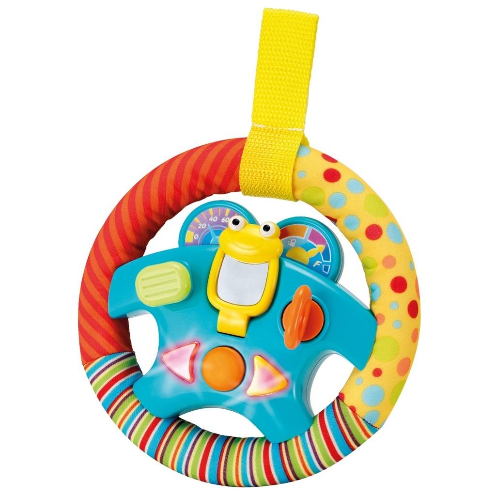 Interaktywna kierownica która wydaje zabawne dźwięki i melodie. Posiada dostosowany do małych, dziecięcych dłoni ergonomiczny kształt. Dodatkowo pokrycie warstwą materiału zapewnia wygodny i pewny uchwyt. Różnorodność materiałów z jakich wykonana jest kierownica rozwija zmysł dotyku niemowlaka. Kierownica posiada automatyczny wyłącznik. Wymaga dwóch baterii AA 1,5V.
