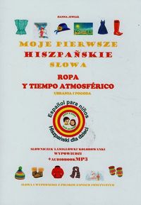 MOJE PIERWSZE HISZPAŃSKIE SŁOWA - UBRANIA I POGODA to książka należąca do serii ""Moje pierwsze hiszpańskie słowa"". Jest to tematyczny słownik obrazkowy dla dzieci, który pozwoli w łatwy sposób przyswoić nazwy części garderoby i elementów pogody i pór roku. Dzięki licznym i ciekawym ćwiczeniom i wypowiedziom dziecko trwale zapamięta nazwy i pisownię poszczególnych pojęć zawartych w książce. Wszystkie słowa i wyrażenia posiadaja także polski zapis fonetyczny, który pozwoli szybciej przyswoić prawidłową wymowę. Ponadto każda książka posiada nagranie audiobook mp3 do pobrania ze strony wydawnictwa za pomocą kodu znajdującego się na tylnej okładce książki, które to nagranie pozwoli na osłuchanie się z prawidłową wymową treści zawartych w opracowaniu.