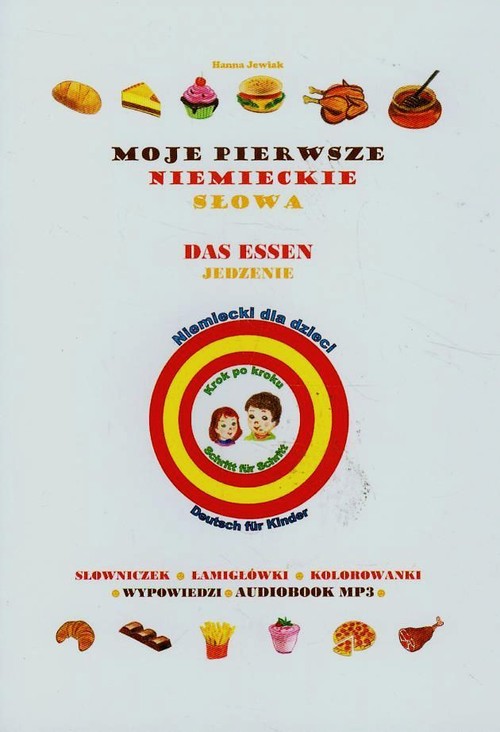 MOJE PIERWSZE NIEMIECKIE SŁOWA JEDZENIE to książka należąca do serii ""Moje pierwsze niemieckie słowa"". Jest to tematyczny słownik obrazkowy dla dzieci, który pozwoli w łatwy sposób przyswoić nazwy produktów spożywczych i potraw. Dzięki licznym i ciekawym ćwiczeniom i wypowiedziom dziecko trwale zapamięta nazwy i pisownię poszczególnych pojęć zawartych w książce. Ponadto każda książka posiada nagranie audiobook mp3 do pobrania ze strony wydawnictwa za pomocą kodu znajdującego się na tylnej okładce książki, które to nagranie pozwoli na osłuchanie się z prawidłową wymową treści zawartych w opracowaniu.
