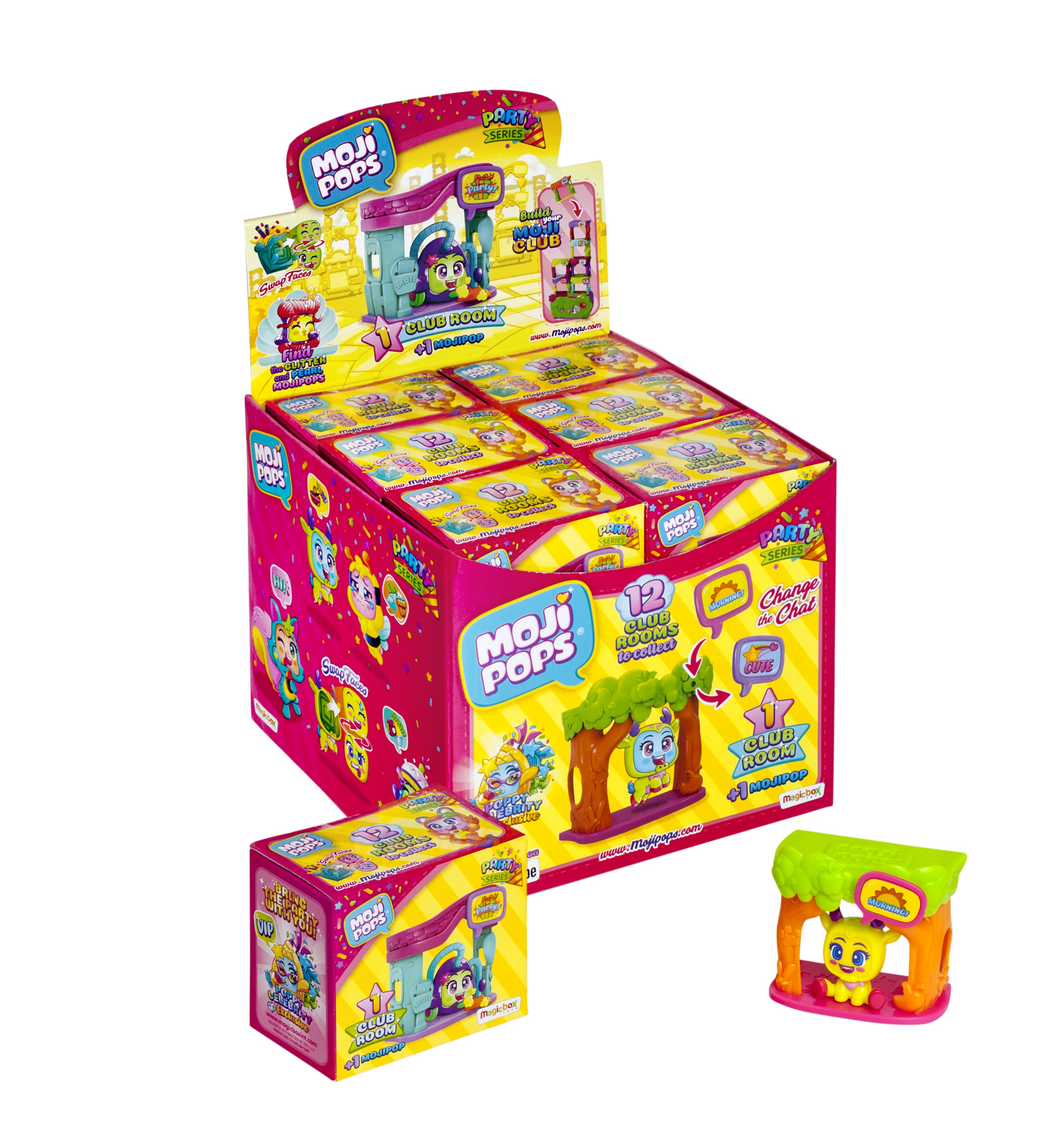 Do zebrania jest aż 6 różnych Club House w nowej serii MojiPops Party! Wszystkie grupy MojiPops mają własny, niepowtarzalny domek klubowy, w którym mogą urządzać wspaniałe imprezy. Każdy Club House zawiera 1 MojiPops i 3 różne, ekskluzywne akcesoria gwarantujące wspaniałą zabawę. Używając specjalnego kółka sami decydujecie, co jest tematem historii i rozmów postaci. Można również użyć tego samego kółka jako parkietu do tańca zawsze, gdy Club House jest otwarty. Na dachu klubu daje się ustawiać również Club Rooms i w ten sposób powstaje wielka budowla. No to zaczynajmy imprezę!