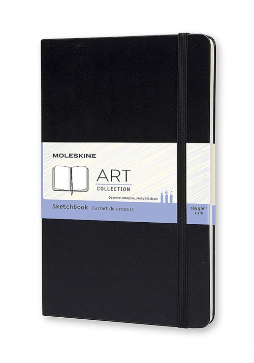 Szkicownik duży, oprawa twarda, czarna z gumką.