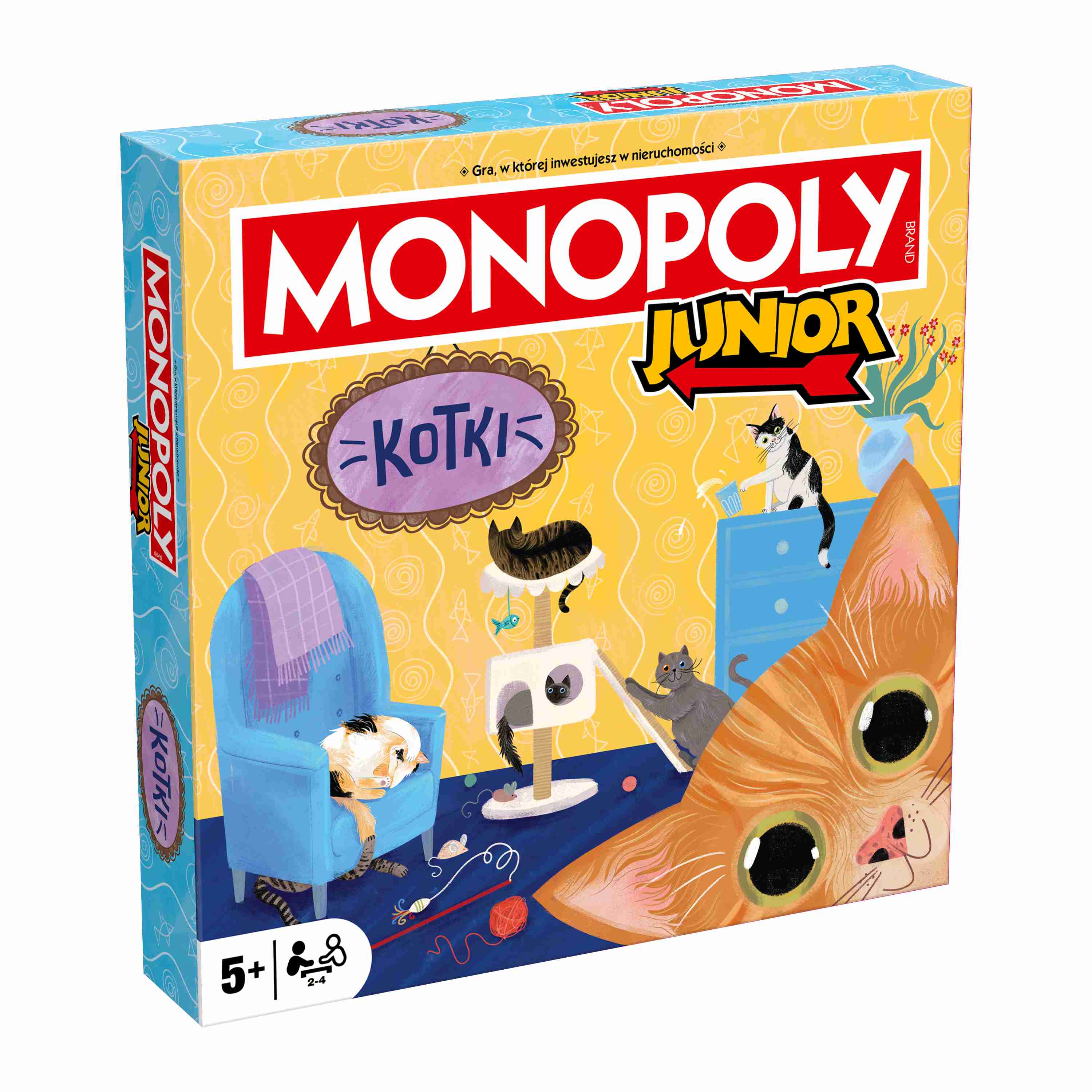 Wyrusz w podróż po planszy, odwiedzaj kocie zakamarki, zbieraj pieniądze MONOPOLY Junior i ucz się podstaw zarządzania w przyjazny, prosty sposób. Kolorowe pionki z uroczymi kotkami, piękne ilustracje i szybka rozgrywka sprawiają, że to idealna gra na pierwsze spotkania z planszówkami.