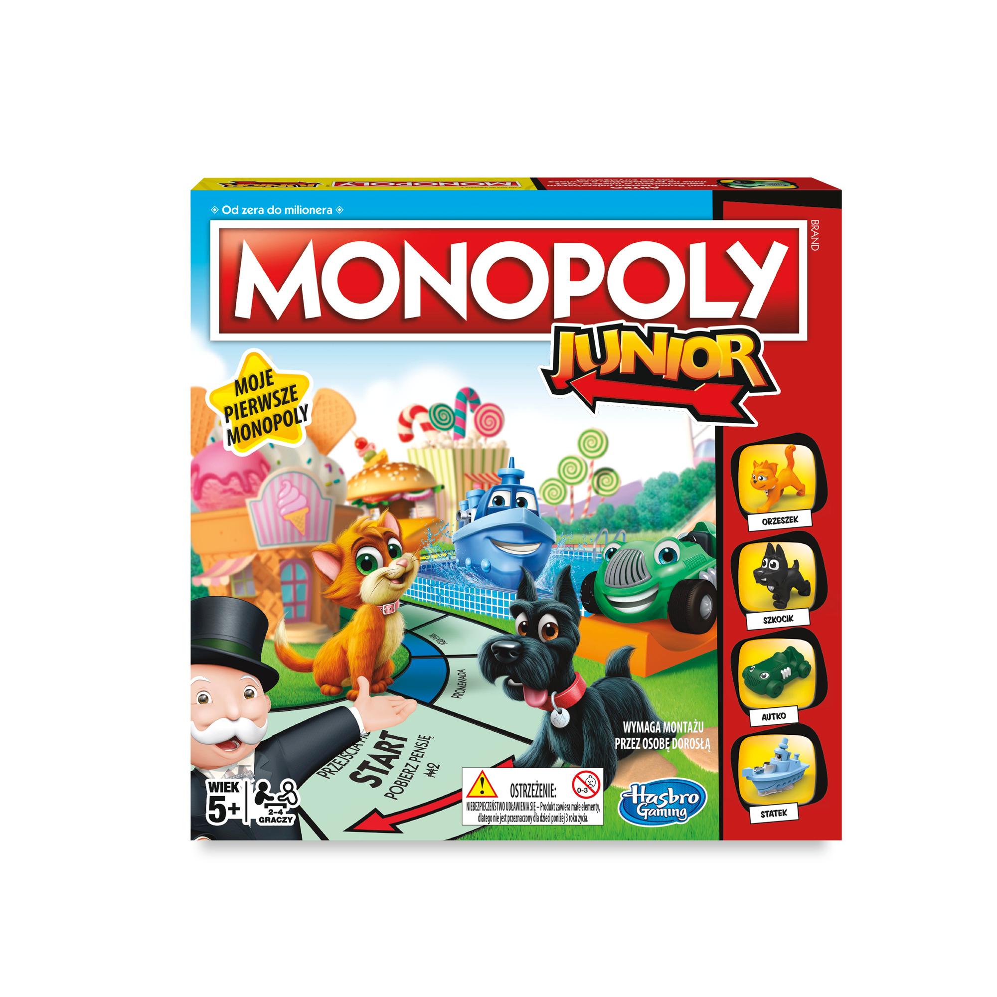Monopoly Junior to klasyczna gra ekonomiczna dla najmłodszych! Nowa wersja zachęca dzieciaki do liczenia i zabawy na stylowej planszy Monopoly, na której kupujemy miasta.