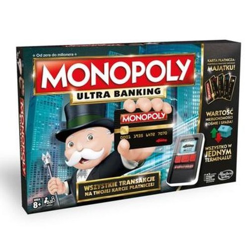 Nowa wersja kultowej gry to prawdziwa rewolucja! Nie znajdziesz tu ani gotówki, ani bankiera. Zamiast tego za nieruchomości płacisz za pomocą karty płatniczej i terminala. Karty nieruchomości wyposażone są w kod, który gracz skanuje, by dokonać transakcji. Nowa jakość i nowe możliwości Monopoly!