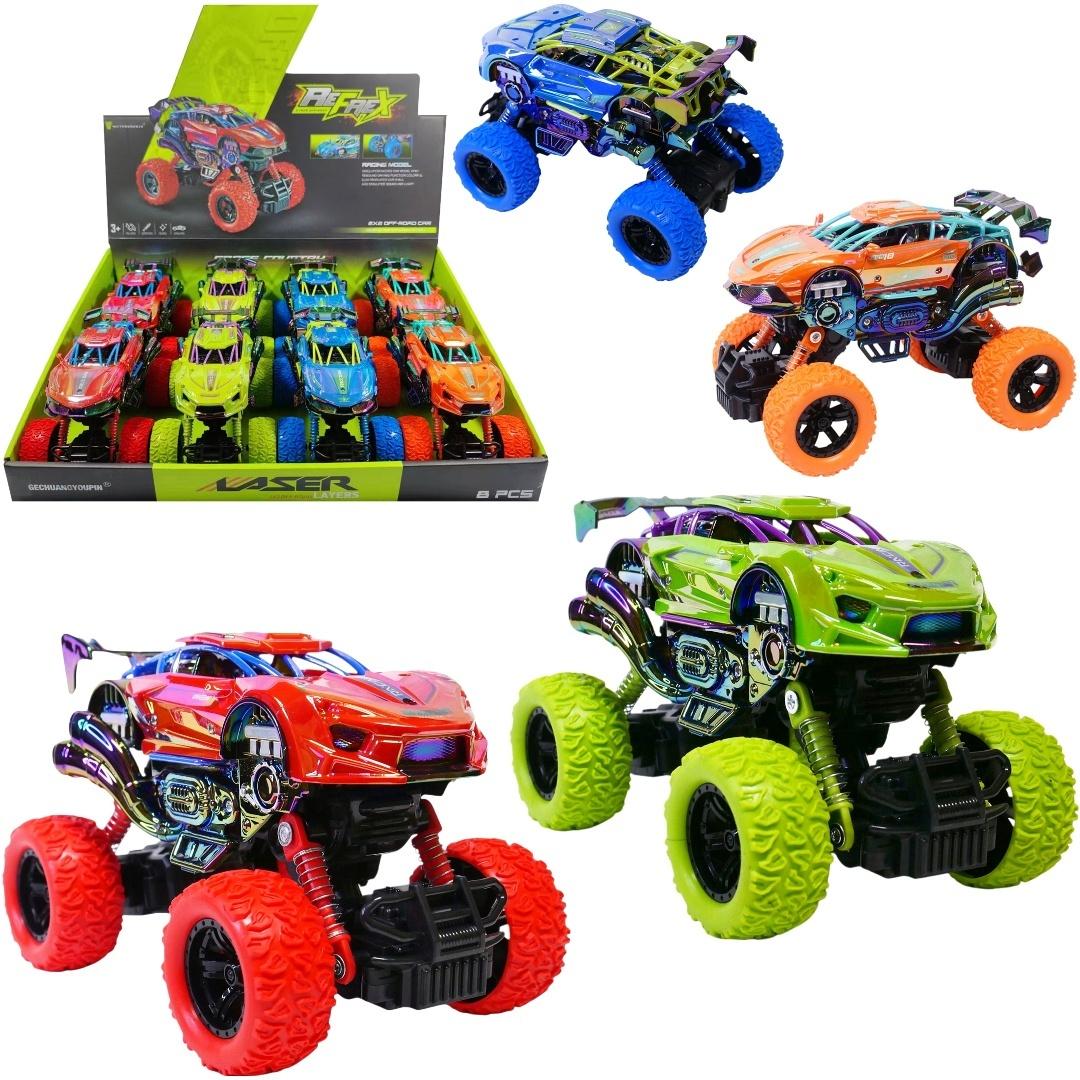 Opis produktuZasady bezpieczeństwaSamochód Monster Truck "LASER - OFF-ROAD KING" - Zestaw Terenowych Potworów Przygotuj się na ekstremalne wyzwania z jednym z naszych samochodów Monster Truck "LASER - OFF-ROAD KING"! Te potężne pojazdy z gigantycznymi kołami i sprężynowym zawieszeniem to idealna propozycja dla małych miłośników terenowych przygód i dynamicznej zabawy. Dostępne w czterech rzucających się w oczy kolorach, zapewnią mnóstwo ekscytujących wrażeń. Agresywny Design i Niezwykłe Kolory: Zestaw prezentuje cztery różne, kolorowe warianty Monster Trucków: czerwony, niebieski, pomarańczowy i limonkowo-zielony. Każdy samochód posiada agresywny, futurystyczny design z metalicznymi akcentami i wyraźnymi grafikami, które podkreślają ich dziki charakter. Co wyróżnia te modele, to ich nadzwyczajnie duże, bieżnikowane koła w intensywnych barwach (czerwone, niebieskie, pomarańczowe, jaskrawozielone), które zapewniają doskonałą przyczepność i zdolność do pokonywania przeszkód. Sprężynowe Zawieszenie dla Ekstremalnej Zabawy: Największą atrakcją tych Monster Trucków jest ich ruchome, sprężynowe zawieszenie. Dzięki niemu samochody mogą swobodnie "skakać", amortyzować uderzenia i pokonywać nierówności terenu, co symuluje realistyczną jazdę off-road. To gwarantuje dynamiczną i pełną akcji zabawę. Rozwój Kreatywności i Aktywnej Zabawy: Zabawa Monster Truckami to doskonały sposób na: Rozwijanie wyobraźni: Tworzenie własnych torów przeszkód, wyścigów i scenariuszy terenowych. Wspieranie zdolności manualnych: Manewrowanie pojazdami i eksplorowanie ich możliwości. Pobudzanie zainteresowania motoryzacją i mechaniką. Zachęcanie do aktywnej zabawy zarówno w domu, jak i na zewnątrz. Solidna Konstrukcja: Wykonane z trwałego tworzywa sztucznego, pojazdy są solidne i odporne na intensywną zabawę, co gwarantuje długie godziny radości z pokonywania wszelkich "przeszkód". Specyfikacje (dla pojedynczego Monster Trucka): Wymiary Pojedynczego Samochodu (orientacyjne): o Długość: około 18 cm o Szerokość: około 10 - 11 cm o Wysokość: około 10 - 12 cm (wraz z kołami) Wymiary Kół (średnica): około 5 - 6 cm Kolory w Zestawie: Czerwony, Niebieski, Pomarańczowy, Limonkowo-zielony x