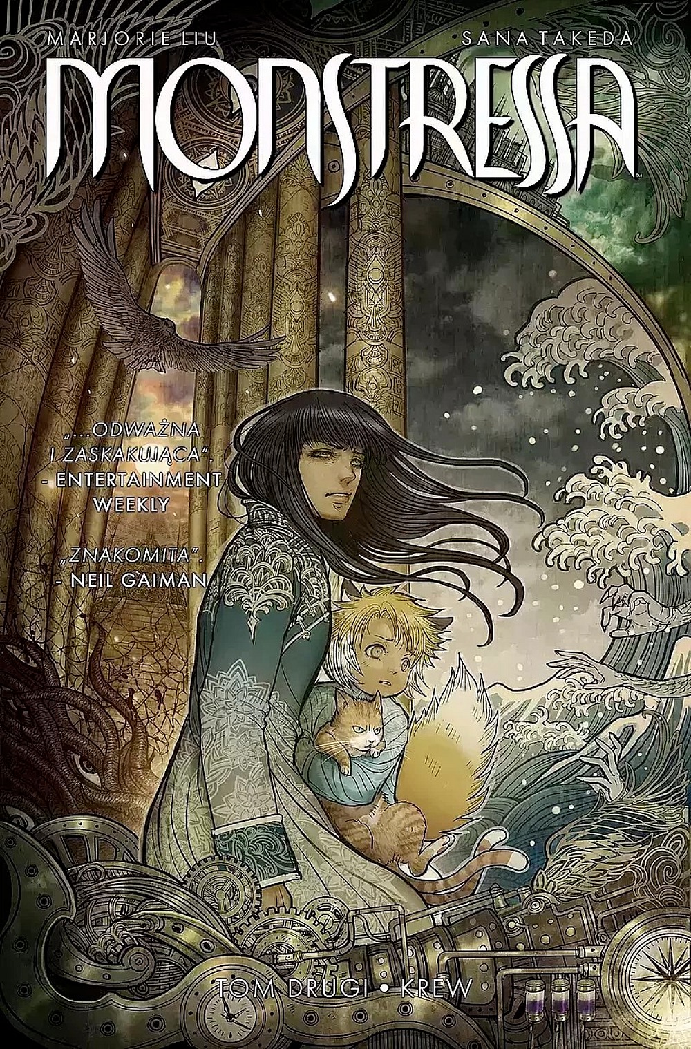 Monstressa powraca. Drugi tom niesamowicie wciągającej i oszałamiającej wizualnym mariażem art-deco, steampunku i mangi sagi autorstwa Marjorie Liu i Sany Takedy. Zdecydowanie jedna z najoryginalniejszych i najodważniejszych nowych serii komiksowych. Jej status potwierdzają liczne nominacje do Eisnerów i Nagroda Hugo dla najlepszej powieści graficznej roku 2017. Rekomenduje sam Neil Gaiman.