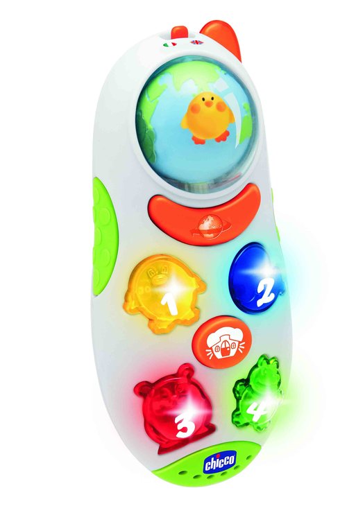 Poznajemy pierwsze słowa w obcym języku! Mówiący Telefon pomaga dziecku zapoznać się z pierwszymi słowami w zabawny i przyjemny sposób. Naciskając kolorowe przyciski maluch słyszy pierwsze cyferki, słowa, odgłosy zwierząt oraz rymowanki.