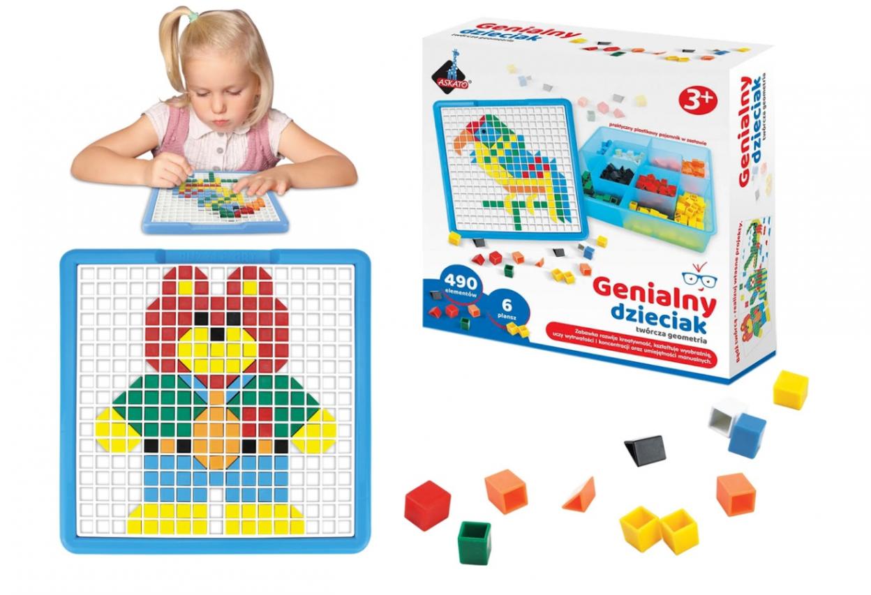 Opis produktuZasady bezpieczeństwaPropozycja dla dzieci w wieku przedszkolnym. Umiejętność analizy i syntezy wzrokowej wymaga wielu ćwiczeń, dlatego ta mozaika zawiera 6 szablonów i aż 490 kolorowych kwadracików i trójkątów, dzięki którym dziecko w sposób przyjemny i ciekawy ćwiczy rozpoznawanie i odwzorowywanie. Zawarte w zestawie wzory uczą dostrzegania szczegółów obrazka, analizowania elementów przedstawionego schematu, kategoryzowania i sekwencji. Kategoryzacja przyczynia się do rozwoju inteligencji. Dzięki niej dzieci uczą się reguł społecznych. Zestaw zawiera: wygodne pudełko do przechowywania 490 kolorowych elementów (kwadratów i trójkątów) 6 obrazków książeczka z pomysłami mozaikowych obrazków POLSKIE OPAKOWANIE! x