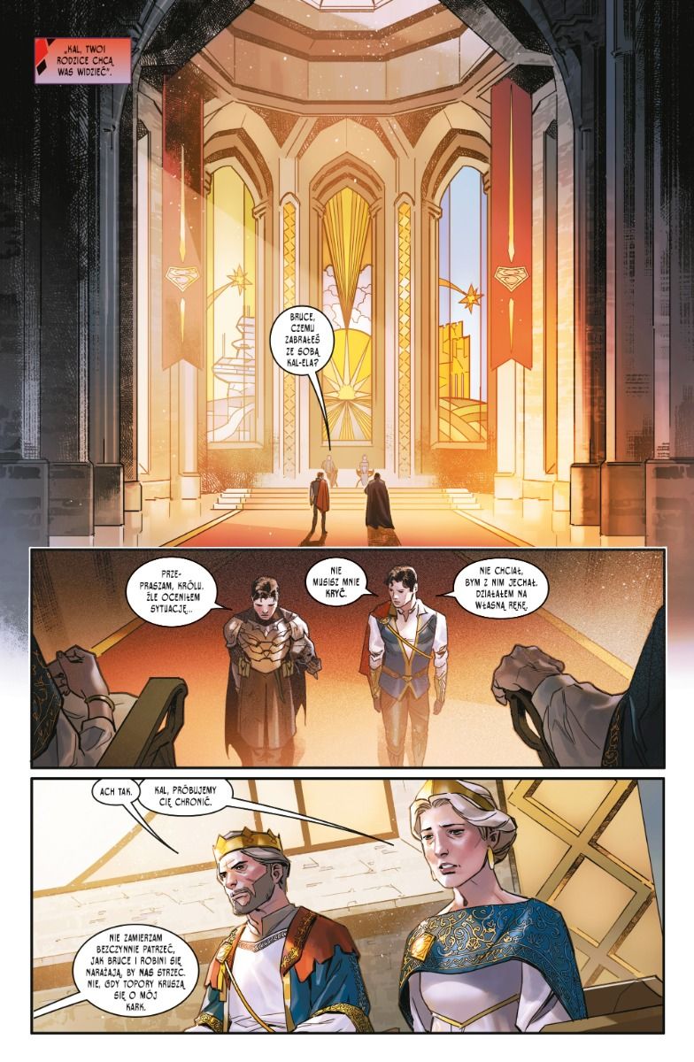 Zapomnijcie o wieżowcach, batmobilach i niewidzialnych odrzutowcach – w tym świecie Superman przeskakuje strzeliste zamki, Batman dosiada rączego rumaka, a Wonder Woman szybuje na dostojnym pegazie. W tym alternatywnym uniwersum DC nic – ani nikt – nie jest tym, czym się wydaje. Oto Ziemia, kraina Trzech Królestw, której losy zmieniły się na zawsze, gdy młode małżeństwo rozbiło się tu po ucieczce ze zniszczonego Kryptona.