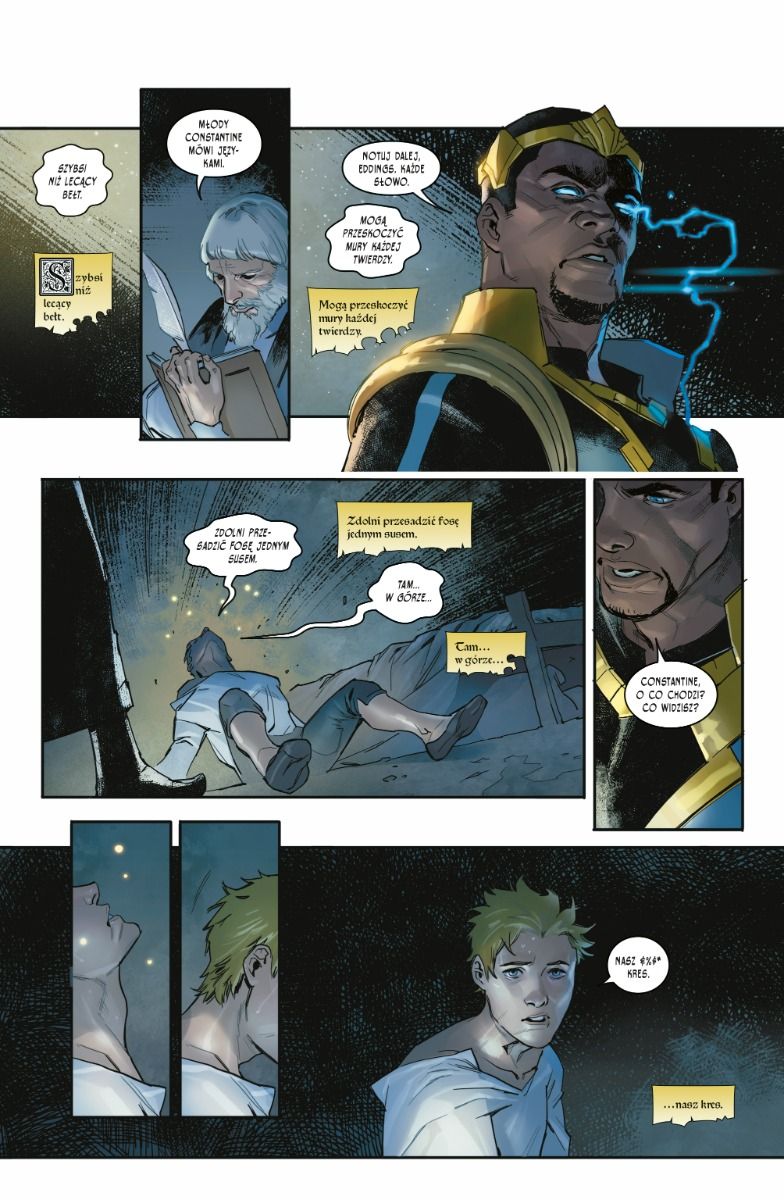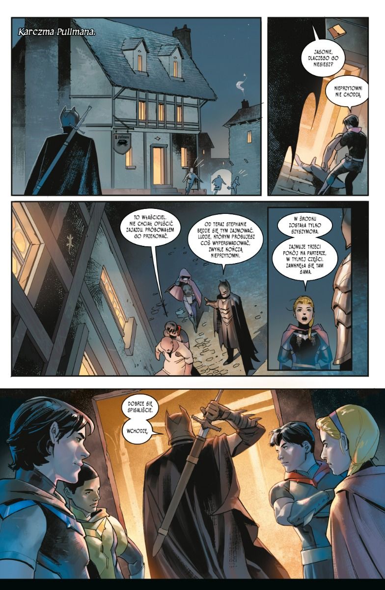 Oto fantasy przez duże F – scenarzysta Tom Taylor („DCeased”, „Injustice”) i rysowniczka Yasmine Putri snują klasyczną opowieść o walce dobra ze złem. Album zawiera materiały opublikowane pierwotnie w amerykańskich zeszytach „Dark Knights Of Steel” #1–12 i „Dark Knights of Steel: Tales From The Three Kingdoms” #1.