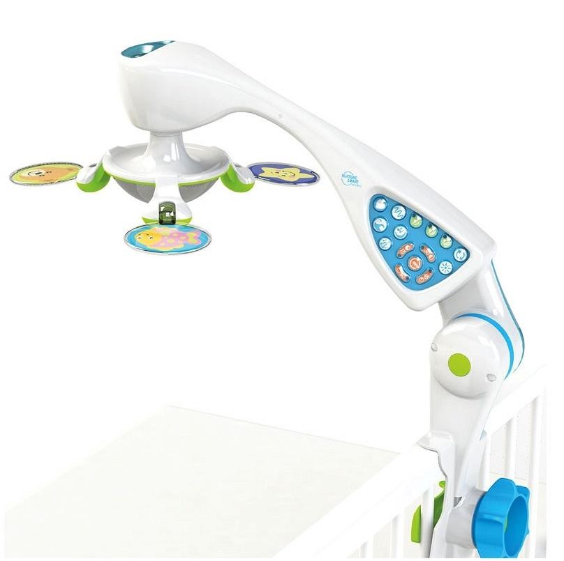 Ta multi karuzela oferuje funkcje dźwięku, ruchu i światła inspirując dziecko do poznawania świata. Wszystkie trzy funkcje działają niezależnie i można je łączyć. Jedną z ciekawszych funkcji jest możliwość ustawienia czasu, aby karuzela odtwarzała jedną z wybranych funkcji od 15 do 60 minut w odstępach 15-minutowych. Ta nowoczesna i wszechstronna karuzela posiada różne dźwięki uspokajające takie jak: biały szum, bicie serca i fale oraz melodie: kołysanka i muzyka klasyczna. Posiada światło nocne - projektor gwiazd. Ma 3 różne ustawienia dźwięku i ruchu, 4 nastawy czasowe (15, 30, 45, 60 minut). Dodatkową atrakcją jest kopułowe, bezpieczne lusterko, które maluch wykorzysta do poznawania siebie oraz trzy kółeczka, które można odwrócić, aby pokazać różne obrazki. Po jednej stronie znajdują się kolorowe postaci: miś, rybka, gwiadzka, a po drugiej czarno-białe, graficzne wzory. Wysokość na ramienia jest regulowana, dzięki czemu można łatwo zmienić pozycję karuzeli zgodnie z potrzebami dziecka i opiekuna. x
