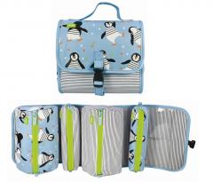 Zestawy kreatywne „MILAN KITS” stworzone specjalnie dla dzieci i z myślą o nich. To seria produktów do rysowania i malowania, które rozwijają kreatywność. Łączą w sobie naukę z zabawą. Idealne do przedszkola, szkoły, ale także w domu, podróży czy na wakacjach. W środku 4 piórniki z wyposażeniem przyczepiane na rzepy, które można używać osobno lub jako całość. Wyposażenie: 18 flamastrów ze stożkową końcówką, 12 kredek trójkątnych, 3 długopisy, ołówek HB, temperówka BASIC, 2 gumki syntetyczne MILAN, linijka. Kolekcja PINGWINY (PENGUINS) model: 08820PNG Materiał wierzchni: poliester, podszewka: poliester.