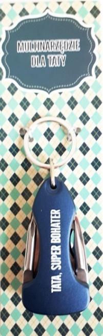 Multinarzędzie z brelokiem to praktyczny gadżet. Wyposażony w latarkę Led, otwieracz do butelek, nożyk oraz dwa śrubokręty