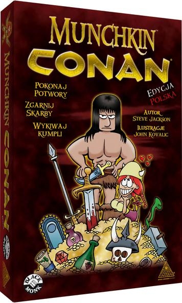 Conan wyzywa świat na pojedynek, zabija potwory, pokonuje armie, śmieje się śmierci w twarz. Kradnie skarby, sprzedaje je i kradnie kolejne. Conan jest BARBARZYŃCĄ. Epicki bohater stworzony przez Roberta E. Howarda staje się pełnoprawnym Munchkinem w Munchkinie Conanie. Graj Cymeryjskim Wojownikiem albo Stygijskim Czarodziejem! Dzierż Miecz Feniksa i zatruwaj swych wrogów Czarnym Lotusem! Pokonuj sługi Thoth-Amona, Piktyjskich Najeźdźców oraz inne wstrętne potwory i rozkoszuj się lamentowaniem ich kobiet! Munchkin Conan jest samodzielną grą, ale szczególnie dobrze łączy się z Munchkinem Fantasy, ponieważ mają takie same rewersy kart! Uwaga! Wyjątkowo wypasione skarby!