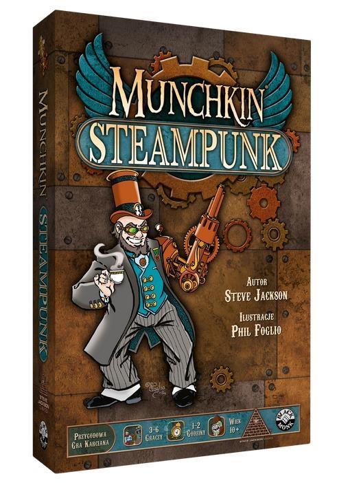 Munchkin Steampunk przenosi graczy do epoki pary i nauki. Dostojne damy i szarmanccy panowie, będziecie mogli wcielić się w Potentatów ery rewolucji przemysłowej, Odkrywców pradawnych Skarbów, Mechaników znających każde koło zębate w swoich Przedmiotach, a także Oficerów armii największych imperiów. Zdobywajcie Poziomy, ujarzmiając Szarżujący Welocyped czy pokonując Gang z Niewidzialnego Zeppelina! A jeśli akurat nie ma okazji do walki, zawsze możecie zapomnieć na moment, że jesteście gentelmenami, by z czystym sumieniem uprzykrzyć życie innym graczom przy pomocy nowych Klątw!