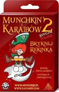 Oto pierwszy dodatek 110 nowych kart do pirackiej gry karcianej Munchkin z Karaibów, w której wykańczasz Potwory, zgarniasz ich Skarby i oszukujesz swoją załogę, bez tego całego durnego odgrywania postaci. A wszystko to by zostać największym postrachem munchkinowych mórz i oceanów.Wróć na pełne morze po więcej pirackich Skarbów, Statków, Potworów i Poziomów! Staw czoła jeszcze straszniejszym ławicom Rekinów, z Rekinem Młotem i Rekinem Wkrętakiem na czele. Ocal swoją Galer(i)ę Handlową przed krwiożerczą Wielką Ośmiornicą i przerażającym Latającym Holendrem, dołącz do swej flotylli Okręt Wojenny, uzbrój go w Kartacze i Broń Masztowej Zagłady i wypłyń w rejs do chwały i Poziomów!DODATEK MUNCHKIN Z KARAIBÓW 2 ,,BRYKNIJ REKINKA"" NIE JEST SAMODZIELNĄ GRĄ- DO GRY POTRZEBNA JEST EDYCJA PODSTAWOWA MUNCHKINA Z KARAIBÓW!