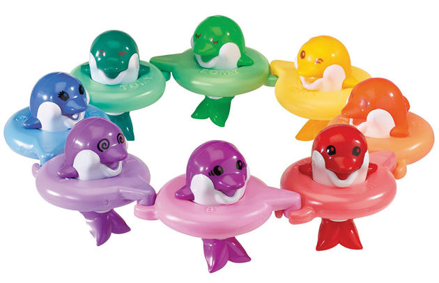 Opis produktuZasady bezpieczeństwaDelfinki, które należy dopasować kolorami do odpowiednich kół, a następnie połączyć wszystkie kółka w linię lub krąg pływający w wodzie. Każdy z delfinków, klepany po głowie, wydaje inny dźwięk. x