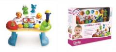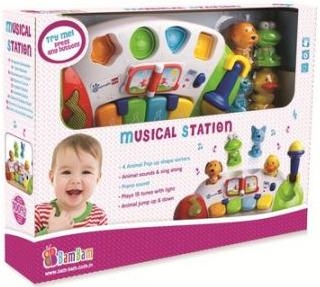 Muzyczna, interaktywna zabawka doskonale edukuje malucha w zakresie rozpoznawania różnorodnych dźwięków, melodii, oraz nauki piosenek. Naciśnięcie jednej z muzycznych postaci pozwala na zmianę dźwięków- w zależności od zwierzątka odpowiadającego mu odgłosu. Przekładanie karty bądź naciśnięcie klawisza czy użycie mikrofonu powoduje wygrywanie odpowiedniej melodii bądź piosenki. Migoczące przyciski dodatkowo uatrakcyjniają zabawę, a 4 kształty sortera rozbudzają ciekawość i kreatywność malucha. Wielość melodii i dźwięków - około 15, w tym instrumentów, odgłosy zwierzątek zapewniając długą zabawę, oraz stymulując rozwój funkcji poznawczych dziecka, rozwój zmysłu słuchu, wzroku, dotyku i zdolności manualnych. A przy tym kształtują poczucie rytmu i muzykalności malca.