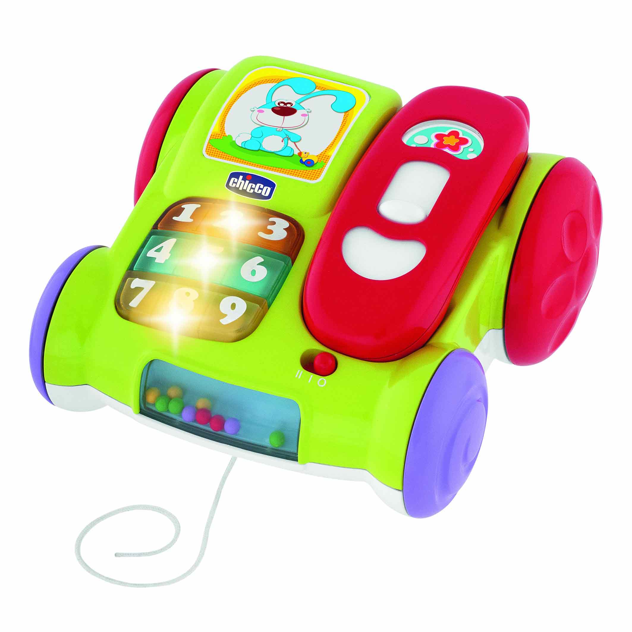 Zabawny telefon ze sznurkiem do prowadzenia oraz wieloma możliwościami zabawy. Wystarczy nacisnąć przycisk na klawiaturze, aby uruchomić jeden z 3 efektów świetlnych czy dźwiękowych. Kiedy dziecko ciągnie zabawkę, aktywują się wesołe melodie. Słuchawka jest łatwa do uchwycenia oraz ma okienko z wyświetlającymi się obrazkami, by sprawić dziecku jeszcze więcej radości. 9 melodyjek i 6 różnych efektów dźwiękowych.