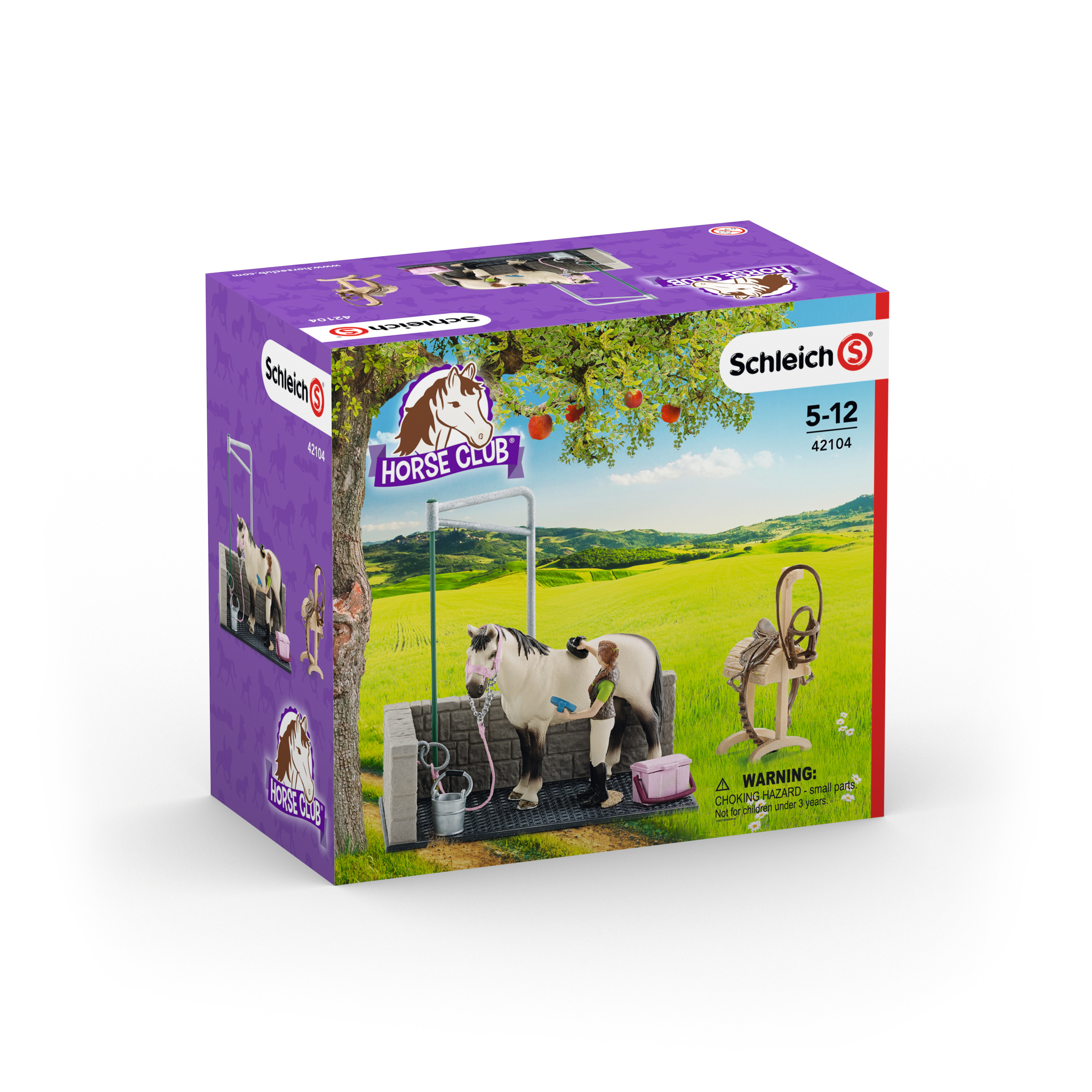 Myjna dla koni to wspaniały zestaw uzupełniający zabawę figurkami Schleich. Jazda konna jest cudownym doświadczeniem, ale równie istotne jest pielęgnowanie zwierząt. Myjnia pozwoli zadbać o higienę koni.